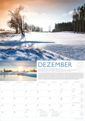Kalendarium mit Pro-Turnieren, Kalenderwochen und Mondphasen
