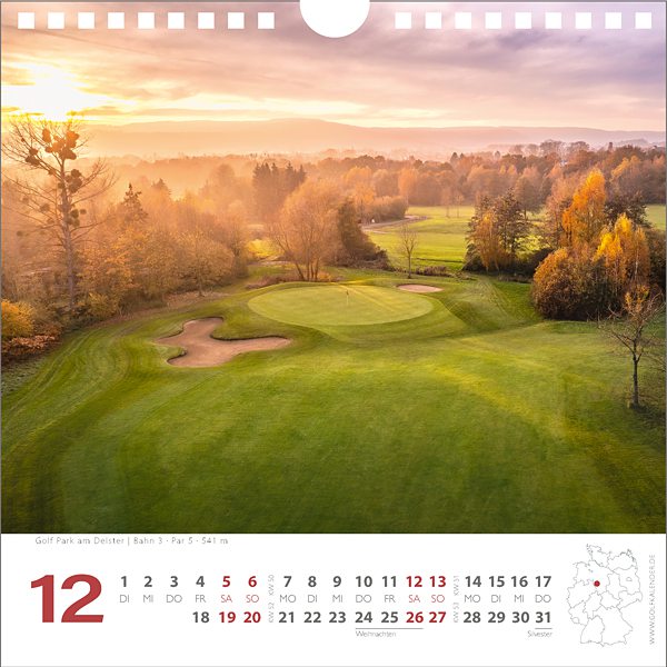 Seit 2017 ergänzt der Golf-Kalender Mini unseren großformatigen Klassiker „Deutschlands schönste Golfplätze“. Im handlichen 21 × 21 cm Format kann er klassisch an die Wand gehängt oder dank integriertem Standfuß zusätzlich als Tisch- oder Schreibtischkalender genutzt werden. Damit passt er überall – ob Büro, Homeoffice oder Wohnzimmer.